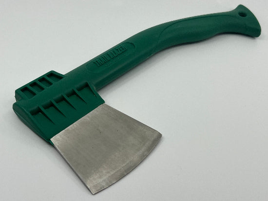The Trail Blazer made in Canada Hatchet is equipped with a razor sharp 440 stainless steel blade and comfortable Green fibre glass reinforced Nylon handle. Canadian Made quality for a life time of use. Its light weight and size ( only 12-3/4" overall) makes it great for hiking, camping and hunting. They were made by a very small company in the Maritimes. The axes were a big success , the company expanded quickly then subsequently closed from what I have been told.