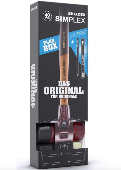 This Halder German made mallet set includes 4 inserts plus a Pica Pocket pencil holder and carpenter pencil.