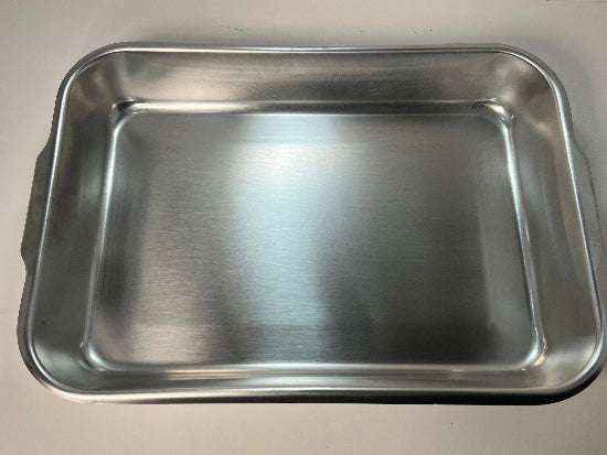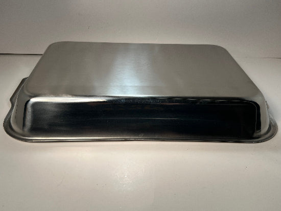 New Old Stock 1960s CANADIANA brand Stainless Steel Tray. These Canadian made trays are made from heavy gauge 18-8 stainless steel and come wrapped in their original protective paper. The trays have a brushed finish on the inside and bottom and a polished finish on the exterior. Originally made for surgical or laboratory applications they find many uses in the kitchen and workshop. Great for marinating in, baking lasagna or chicken . Also great in the workshop ( using a different tray ... not the one from the kitchen) for sorting small parts or cleaning and soaking greasy bits and pieces. Kids love them for sorting lego or puzzle pieces . Made from very heavy gage 18-8 Stainless Steel. They don't warp or twist like cheap light gauge pans. Premium quality. Canadian made ! Measure approximately 15-3/4" x 11-1/4" x 2" slightly more if you include extended portion on each side for lifting.