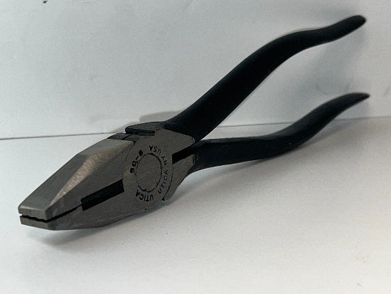 New Old Stock 1960's  UTICA Tools Utica NY USA 50-8 8" Heavy Duty All Steel Linesman Pliers . These pliers have been in long term warehouse storage since the 1960's. They are premium US quality made by one of the best. These pliers feature heavy duty side cutters as well as very deeply serrated flat jaws for grabbing and holding. A rare find!