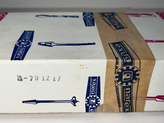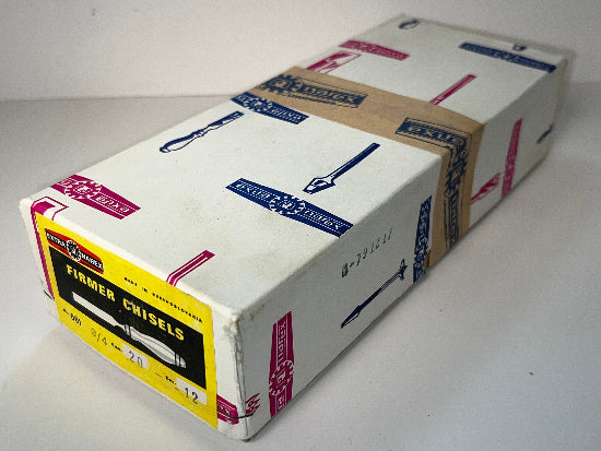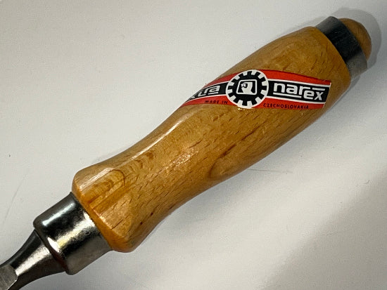 New Old Stock 1979 Vintage NAREX 3/4" Bevel Edge FIRMER Chisel. Excellent quality from the famous Czech maker. These chisels have been packed away for decades and only opened for the pictures. We are showing the box for informational purposes only ( the date is shown) but is not included. The chisels are covered in packing grease which has kept them new and perfect for all these years. This grease was not removed from the chisel for the pictures but could be easy with some solvent. The machining is lovely and the finish on the European Beech handles is flawless. The handle features 2 ferrules for added durability.