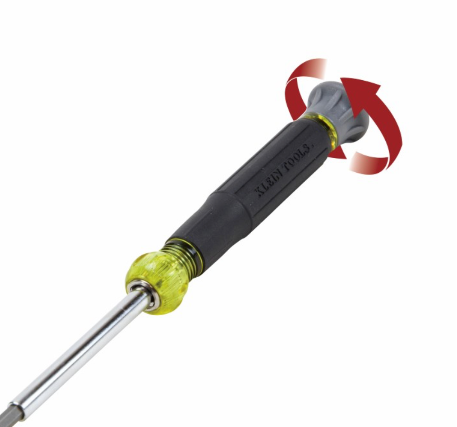 Featuring four TORX tamperproof bits in one tool, Klein's 4-in-1 Electronics Screwdriver is designed for precision work. The swivel cap provides optimum control. Made of the highest quality tempered steel, carefully heat-treated for maximum strength, and precision milled to fit screw openings securely. Cushion-Grip handles offer outstanding comfort and control. Corrosion-resistant chrome plated barrel that holds two double-ended bits.