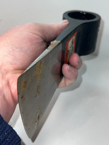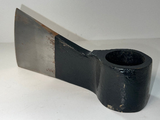 New VERY Old Stock ( made in the 1950s) CHALLENGER AXE,  Burgess Tool Co OTTAWA Canada Trade AXE Head. These new old stock tools were found in a wooden crate wrapped in brown paper and have been in warehouse storage since they were made. Burgess tool was started in 1945 and closed in the 1970s. These Trade axe heads feature a round hole for hafting. This was to make it easier for the South American Indigenous tribes  to fit a handle out of a branch or something similar. All heads have  some light surface oxidation but for their  age the condition is spectacular.