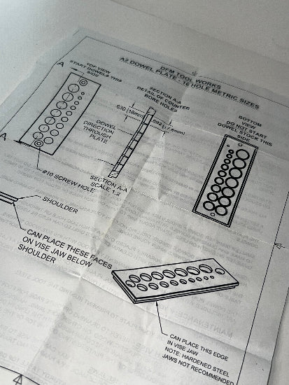 INNOVATIVE COUNTERBORED HOLES: The DFM Tool Works Dowel Plate stands out with its counterbored holes, where the hole bottom diameter is larger to reduce friction on the dowel as it passes through. This unique feature ensures smoother dowel production and minimizes effort, especially when working with hardwoods.