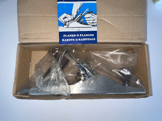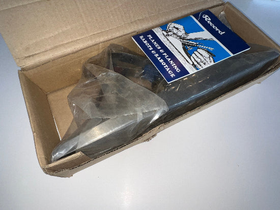 Pristine ( Looks Un-Used ) Record Marples England No. 05 Hand Plane complete in the box with paperwork. The box appears to be the original but it has no label on it and is not in great condition ( crumpled and some tears) from years of storage in a workshop environment. The original paperwork is also included. The plane appears to still have the light preservative oil coating on it . It has dried and has saw dust stuck to it. I did not remove this oil so it is apparent in the photos. There is not rust or damage of any kind that I can see. Everything looks perfect but dusty. A beautiful plane that is very hard to find in this condition.