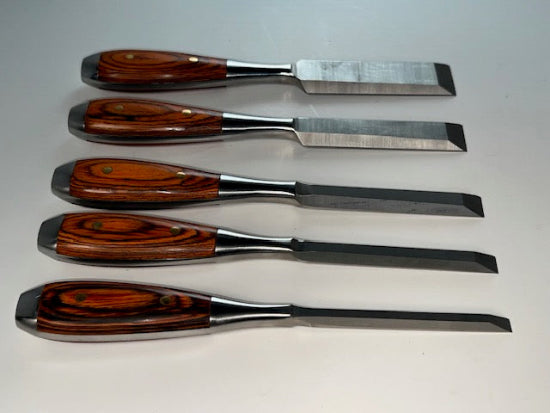 Pristine Un-Used 5 pc CHESTNUT TOOLS by Lee Valley Perfect Pattern Bevel Edge Chisel Set